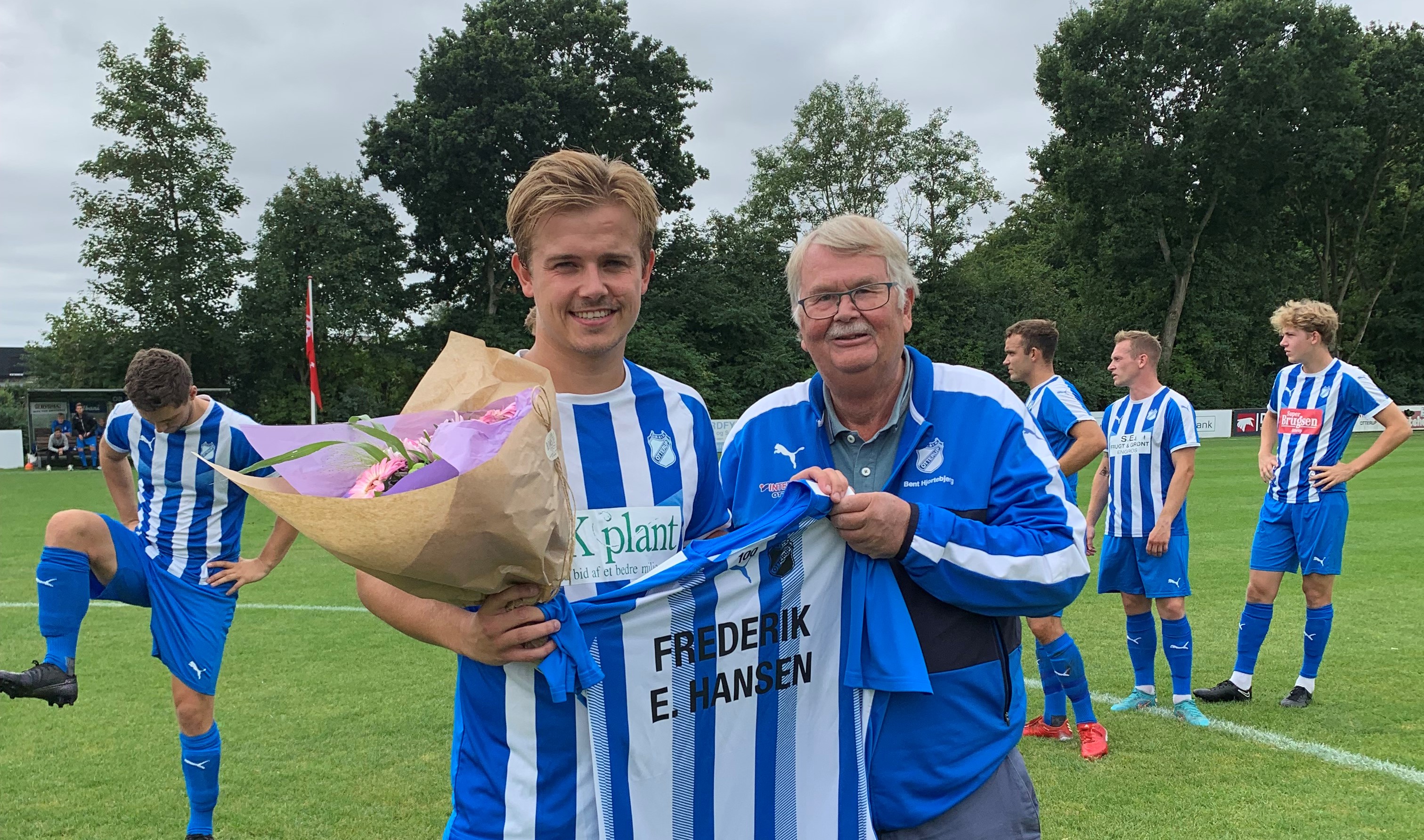 Det er Frederik Elmkær Hansen for hans 100 kampe på Otterup’s 1. hold.